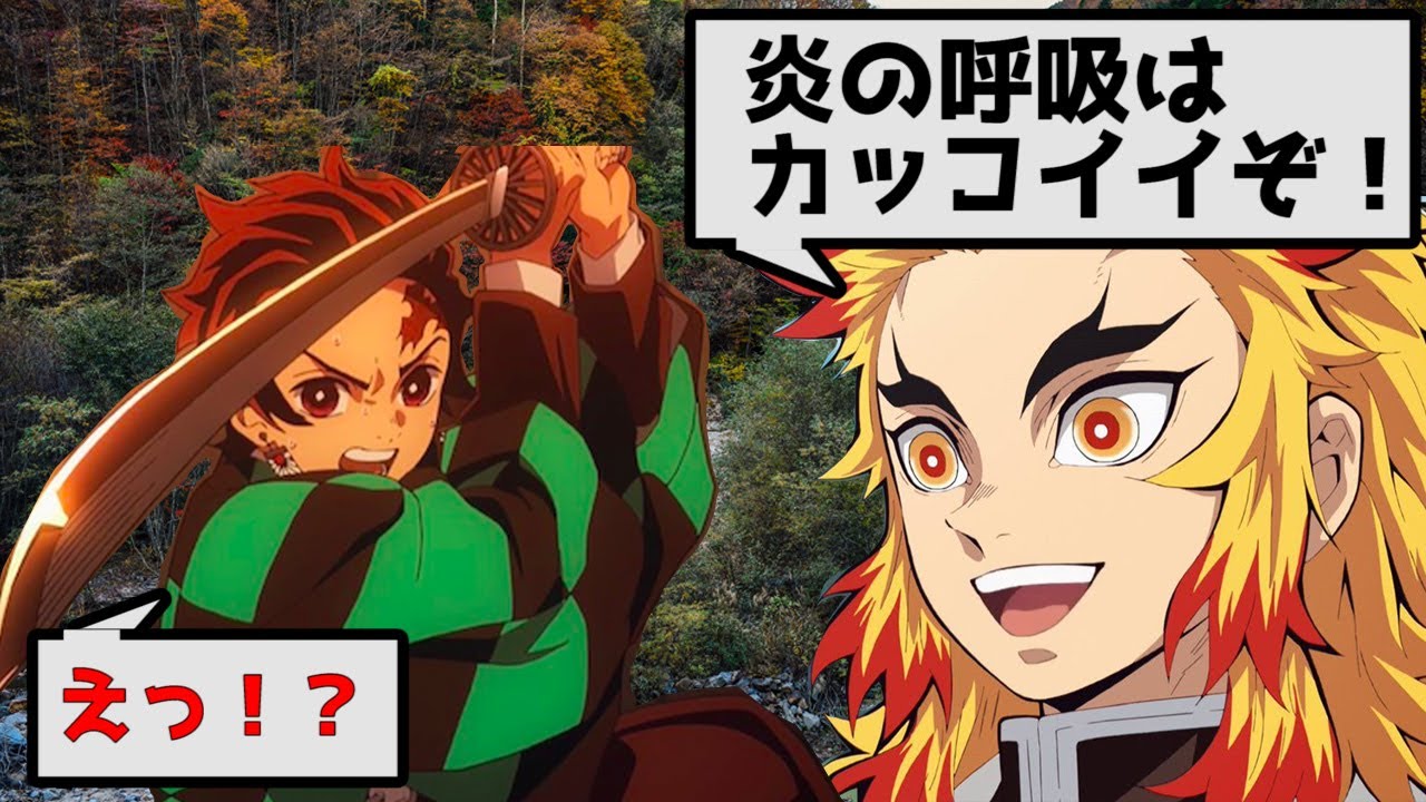 鬼滅の刃 もしも炎柱 煉獄杏寿郎が炭治郎に炎の呼吸の修行をつけていたら 壱の型から全部教えてやろう 炭治郎 いや ちょっ きめつのやいばline 柱稽古 無限列車編
