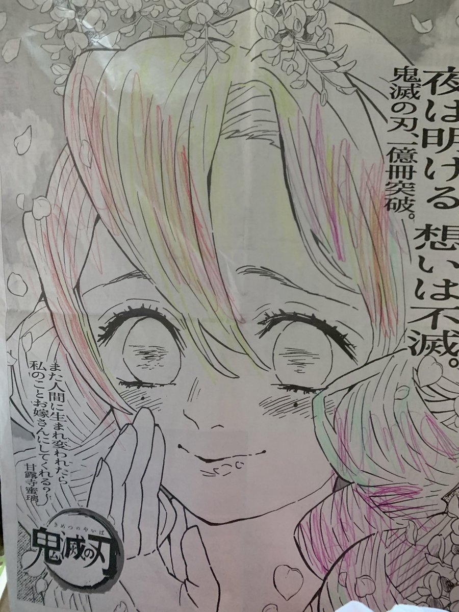 稲村優奈 on twitter 昨日の 鬼滅の刃 の新聞広告 鬼滅の刃が好きな娘に塗り絵だよ と渡したら 上手に塗ってくれました 良く色合いも覚えていて感心しました 煉獄杏寿郎 甘露寺蜜璃 3歳児 塗り絵 新聞広告