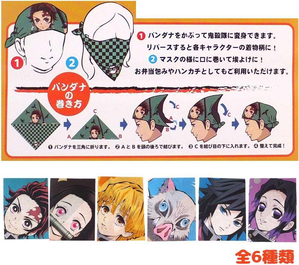 amazon co jp 鬼滅の刃 全集中展 バンダナハンカチ 全6種 竈門 炭治郎 竈門 禰豆子 我妻 善逸 嘴平 伊之助 冨岡 義勇 胡蝶 しのぶ バンダナ ハンカチ ホビー