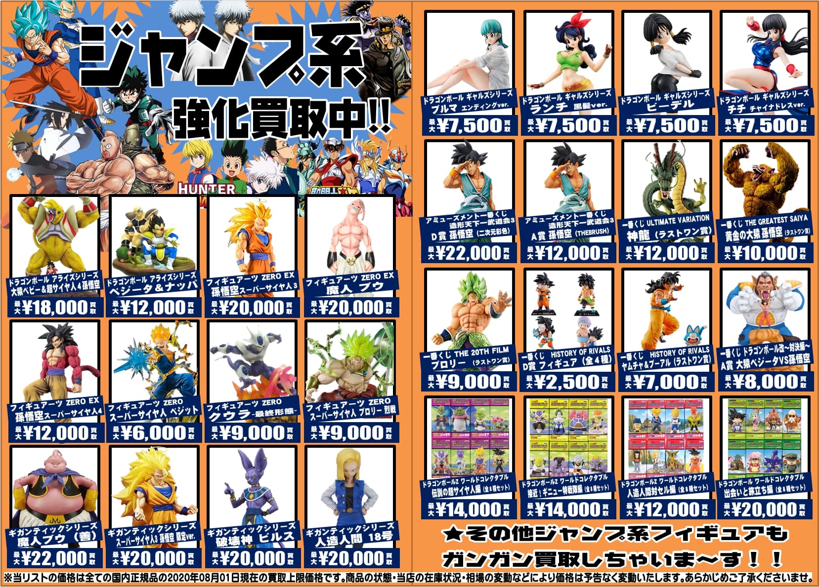 フィギュア買取価格表 全国から送料無料で買取中 お家にいながら売れます 千葉鑑定団八千代店