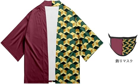 senmhoo鬼滅の刃 コスプレ コスチューム きめつのやいば 冨冈义勇 竈門禰豆子 我妻善逸 竈門炭治郎 胡蝶 しのぶ 和服 和装 和服 羽織 はおり 着物 マント ジャケット tシャツ漫画風 半袖 フード付き服 男女兼用 120 冨冈义勇