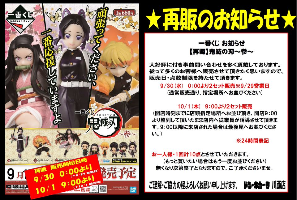 鬼滅の刃 一番くじ 参 9月12日より発売 9月30日より2次出荷分も
