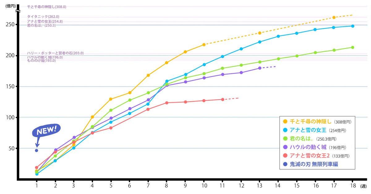 劇場版 鬼滅の刃 興行収入グラフが更新されたが なんだかおかしいことになっていた 座標バグってますよ 冗談みたいなグラフ togetter