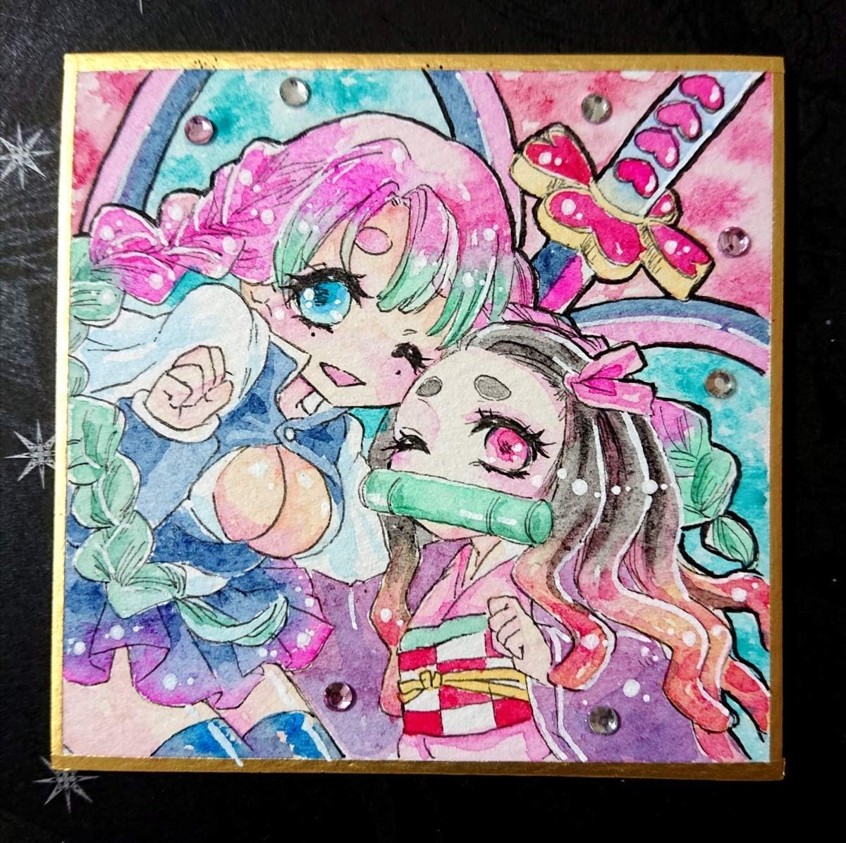 amazon co jp 同人 手描きイラスト 鬼滅の刃 竈門禰豆子 甘露寺蜜璃 ミニ色紙 透明水彩画 豆色紙 姫色紙 anime グッズ ホビー 通販