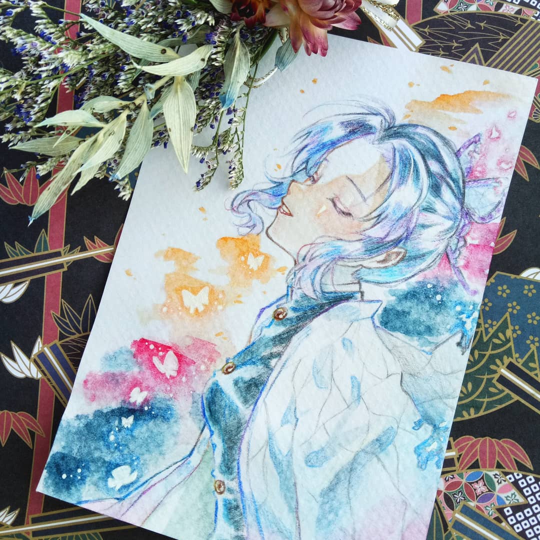 紅茶加糖on twitter 胡蝶忍 こちょうしのぶ 太愛胡蝶忍小姐姐了 打算有空再畫個鬼化的蝴蝶忍 原創 水彩 watercolor 少女 young girl こちょうしのぶ