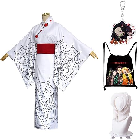 shinykids ウィッグ付き 鬼滅の刃用 子供服 蜘蛛の鬼 綾木累 子供コスプレ衣装 キッズ 仮装 鬼滅の刃コスチューム フルセット 小道具付き 文化祭 ハロウイーン パーティー アニメ鬼滅の刃周辺 キーホルダー こどもの日 夏祭り イベント 贈り物 暗めの模様