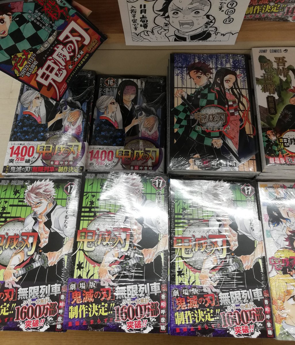 紀伊國屋書店天王寺ミオ店 on twitter すみません 4時間ほど前に全巻再入荷とお伝えした 鬼滅の刃 ですが 一足先に入荷していた最新17巻 がつい先ほどすべて売れてしまいました 16巻までならまだ在庫がございます 17巻はまた入荷するまで少しお時間をいただきます