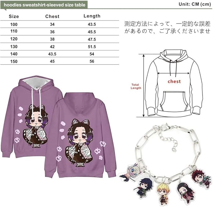 鬼滅の刃 子供服 パーカー キッズ プルオーバー 長袖 スウェット フード付き 男の子 女の子 子供 イベント 衣装 記念シャツ アニメ プリント 春秋冬 柔らかい 衣装 こちょう しのぶ カナヲ たんじろう ねず 鬼滅の刃 グッズ ブレスレット付き