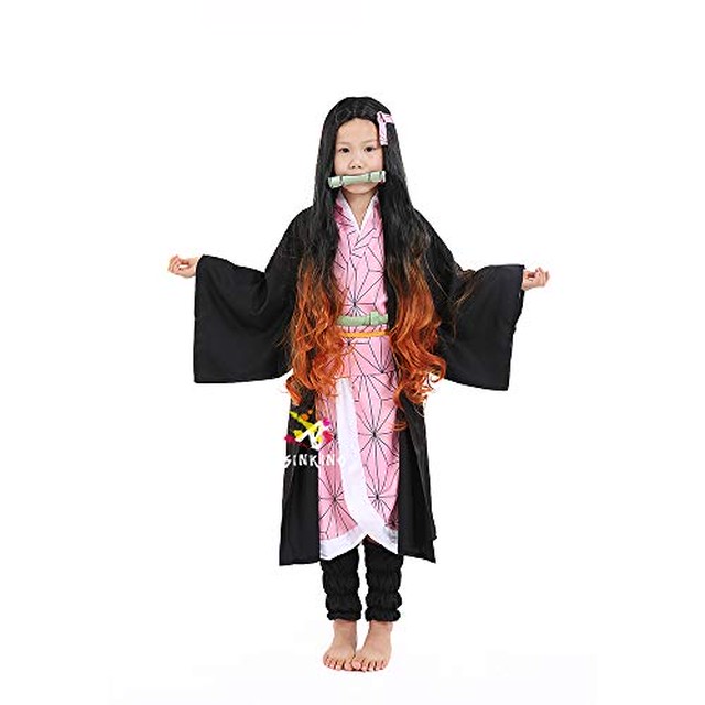momocos ねずこ 子供服 ウィッグ付き 鬼滅の刃 きめつのやいば 竈門禰 豆子 かまどねずこ コスプレ衣装 鬼滅の刃 グッズ 小物セット 子供用 コスプレ 子供服セット ねずこ 130センチ
