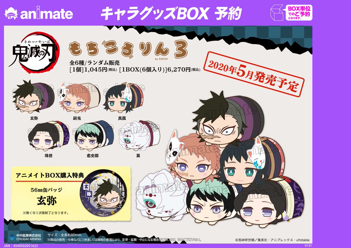 鬼滅の刃 もちころりん 鬼滅の刃 もちころりん3 ぬいぐるみマスコット 6個入りbox 中外鉱業 2020年5月発売予定 人気フィギュア安値で予約 トイゲット blog