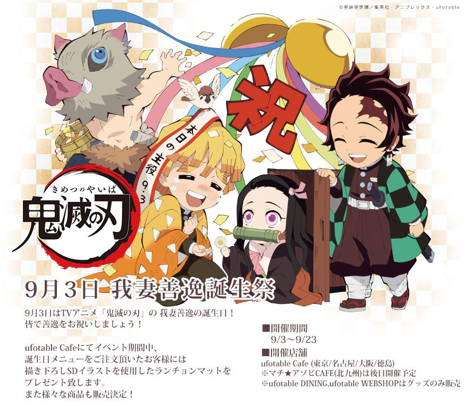 ufotable cafe kitakyushu マチ アソビcafe北九州 on twitter 9月3日は雷の呼吸の使い手 我妻善逸のお誕生日 本日より 鬼滅の刃 コラボカフェで開催の我妻善逸誕生祭ですが 北九州は改装期間中につきリニューアルオープン後に改めて開催予定です 詳細な