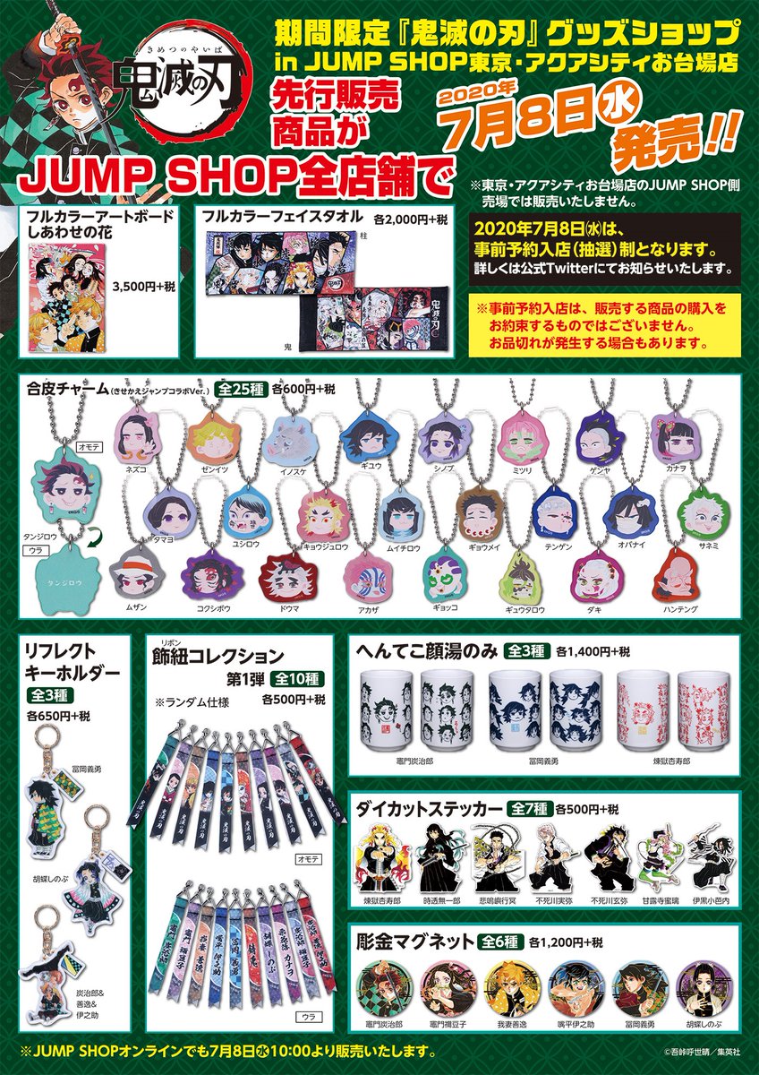 期間限定 鬼滅の刃 グッズショップin jump shop東京 アクアシティお台場店 jumpshopk twitter
