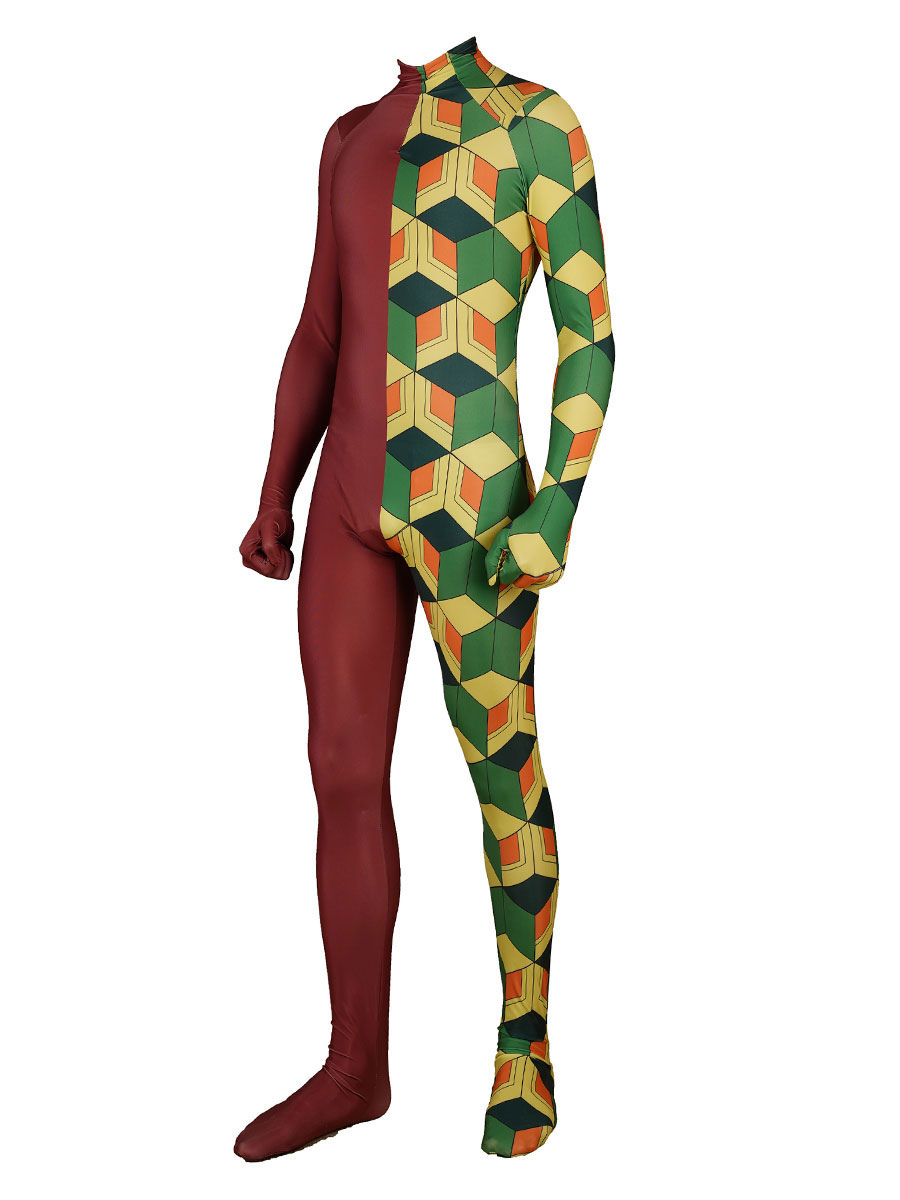 鬼滅の刃 全身タイツ ティール バイカラー 悪魔の殺し屋 コスプレ 鎌戸たんじろう ライクラスパンデックス ジャンプスーツ コスプレ衣装 コスチューム イベント ハロウィン衣装