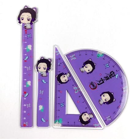 amazon 鬼滅の刃 文房具 4点セット定規 半円分度器 三角定規 ブックマークきめつのやいば アニメ 萌えグッズ 胡蝶 しのぶ 学用品 事務用品 多機能 定規セット 作図ツール 可愛い しおり 小学生 中学生 高校生 幾何学用品 オフィス用 人気アニメギフトプレゼント 定規