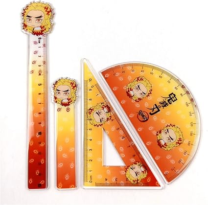 amazon 鬼滅の刃 文房具 4点セット定規 半円分度器 三角定規 ブックマークきめつのやいば アニメ 萌えグッズ 煉獄 杏寿郎 学用品 事務用品 多機能 定規セット 作図ツール 可愛い しおり 小学生 中学生 高校生 幾何学用品 オフィス用 人気アニメギフトプレゼント 定規