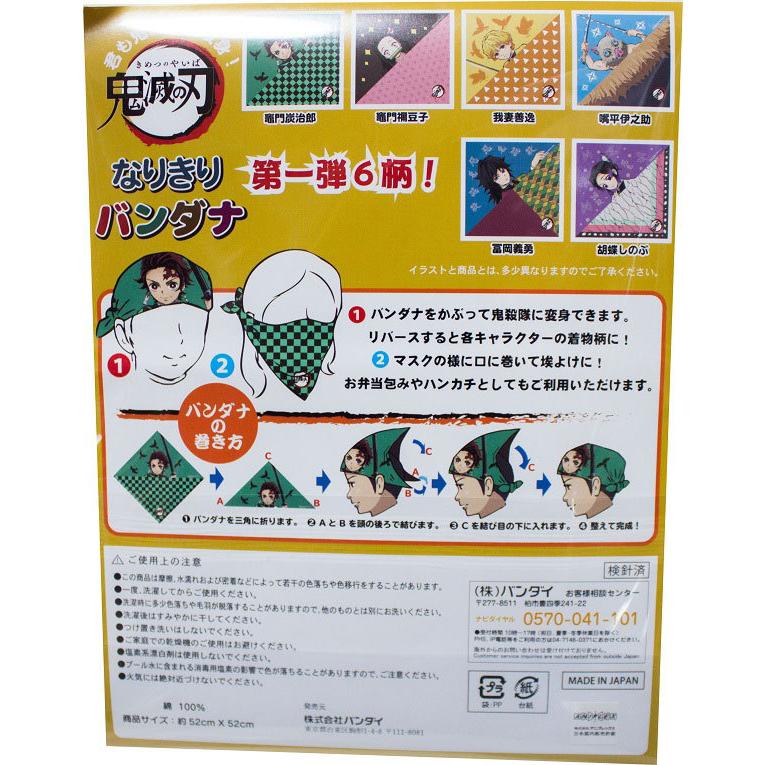 鬼滅の刃 なりきりバンダナ 約52 52cm 我妻善逸 綿100 ランチクロス 日本製 あがつま ぜんいつ きめつのやいば ナフキン 変身 キッズタウン