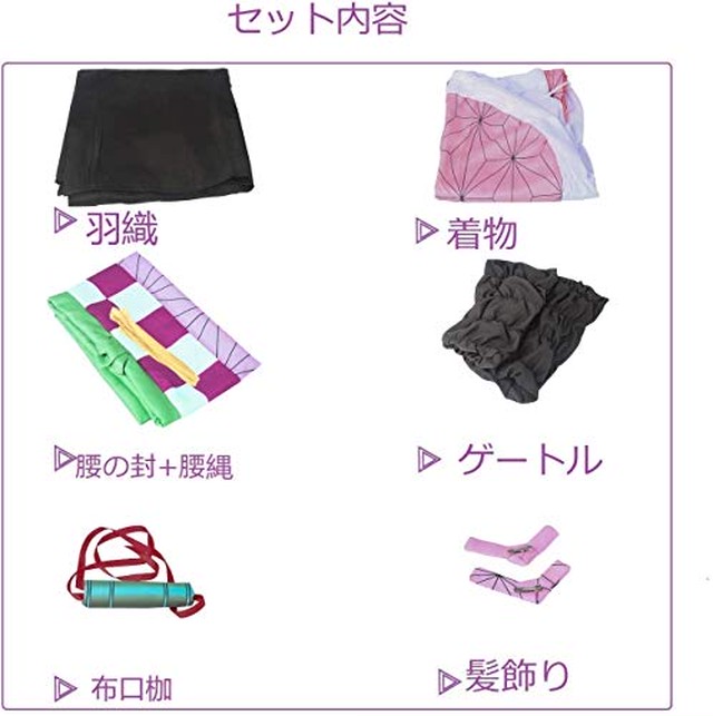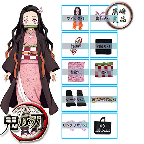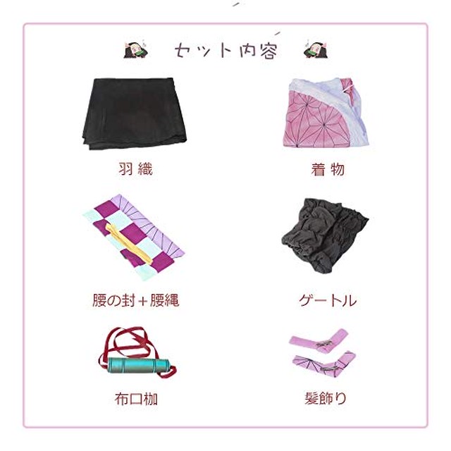 新品 未使用 鬼滅の刃 kimetsu no yaiba 竈門祢豆子 コスプレ衣装 コート 着物 腰帯 ゲートル アクセサリー セット cosplay