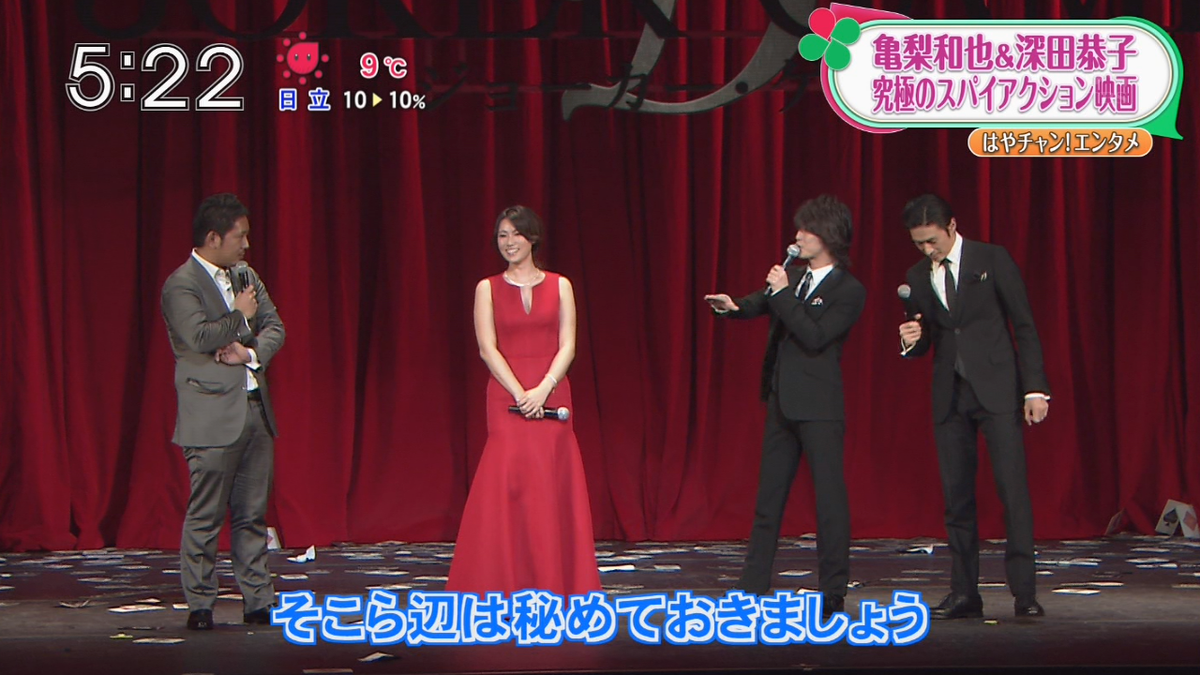 kc223 amor亀たん ar twitter 1 9亀ws はやチャン 5 21 5 22 1分20秒 亀梨和也 深田恭子 究極のスパイアクション映画 映画 ジョーカー ゲーム 完成披露試写会 映画は今月31日公開 フジとはちょっと違う映像 http t co wukbencbk9