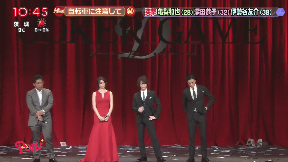 菁 در توییتر kfc 223 1 9亀ws pon 10 45 10 48 2分53秒 突撃 亀梨和也 28 深田恭子 32 伊勢谷友介 38 映画 ジョーカー ゲーム 完成披露試写会 映画紹介 pon突撃インタビュー http t co 4hyarchjz9