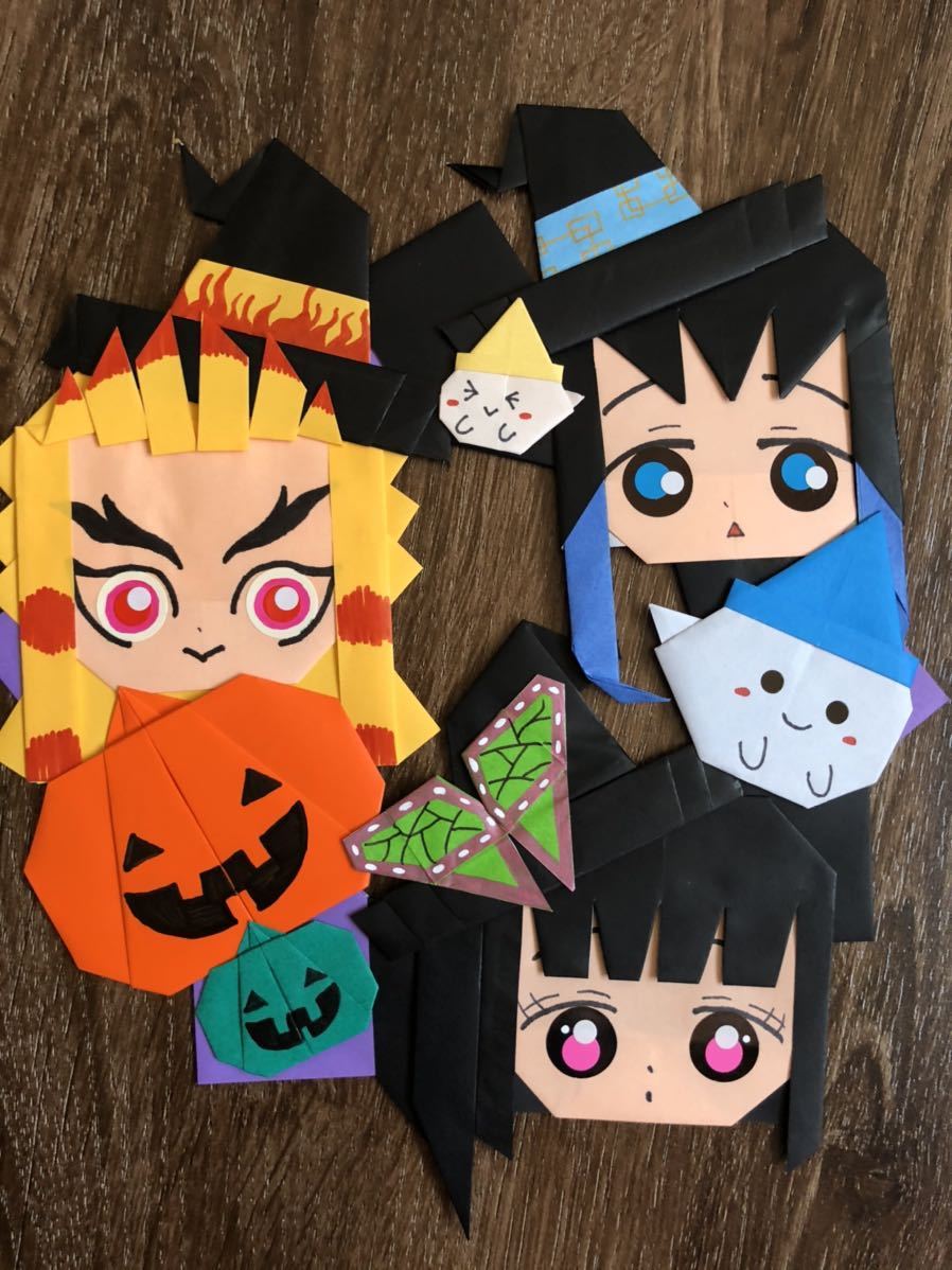 ハロウィン折り紙 魔女 鬼滅の刃 胡蝶しのぶ kimetunoyaiba