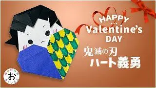 簡単なハートの折り紙 origami 鬼滅の刃 きめつのやいば ハートの禰豆子 ねずこ のバレンタインの折り紙の折り方