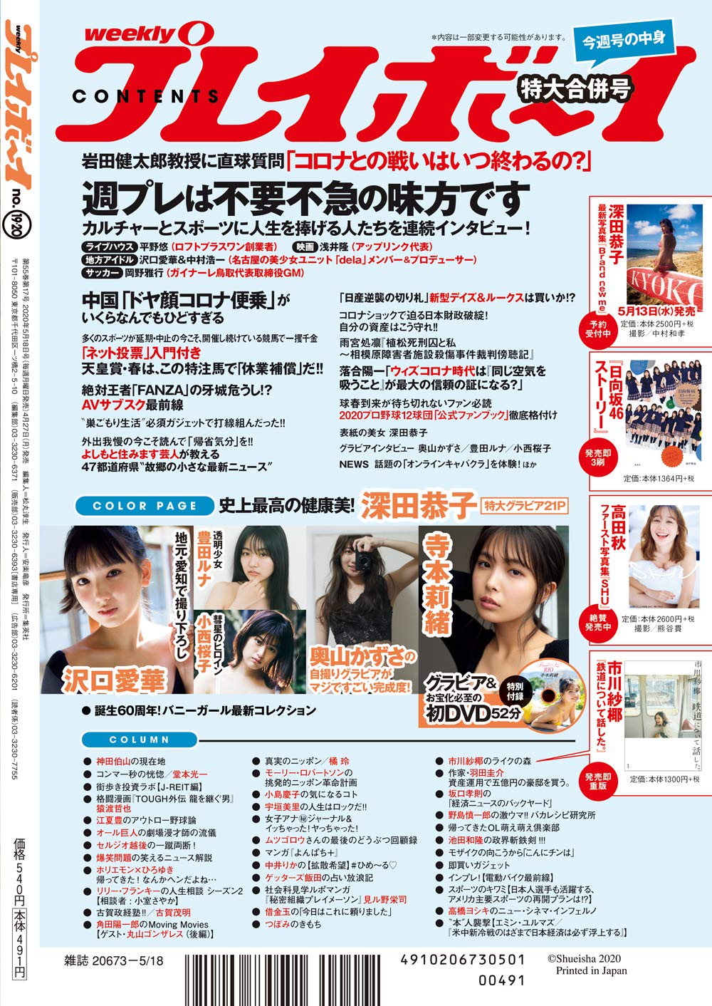 weekly playboy 2020 05 04 no 18 深田恭子写真集 brand new me 5月13日 水 発売予定 mic mic idol
