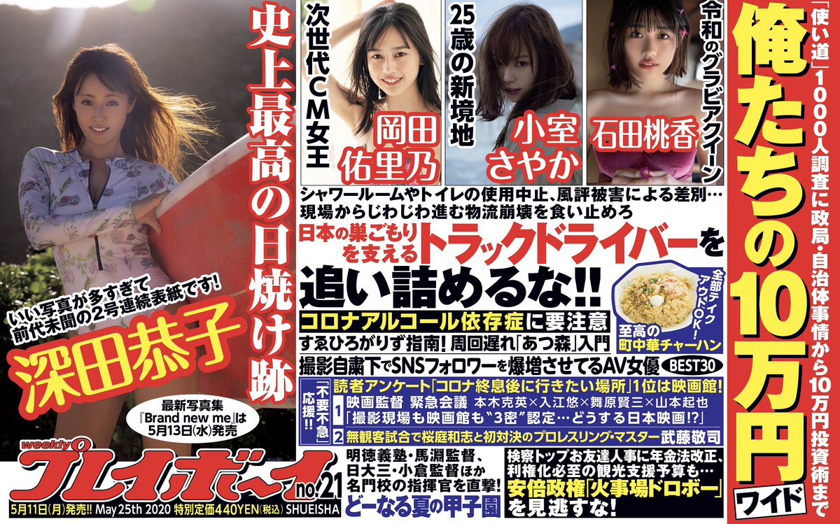 週プレ グラビア on twitter 月曜日ー 5 11発売 週刊プレイボーイ 永遠のvenus 深田恭子さま 前代未聞の2号連続 表紙 巻頭 今週もいっしょに stayhome 週プレは不要不急の味方です 電子版 https t co hxspmicjbz amazon https t co