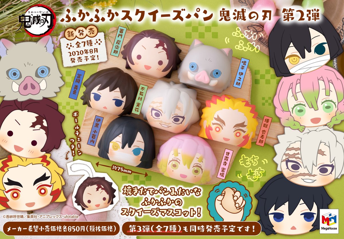 メガハウス メガホビ on twitter ご予約受付中 ふかふかスクイーズパン 鬼滅の刃 第2弾が登場 新たに杏寿郎 蜜璃 小芭内 実弥を可愛く立体化 伊之助はイノシシver もちもち ふかふかな炭治郎や義勇達を集めよう https t co bbtphfpbp8 鬼滅の