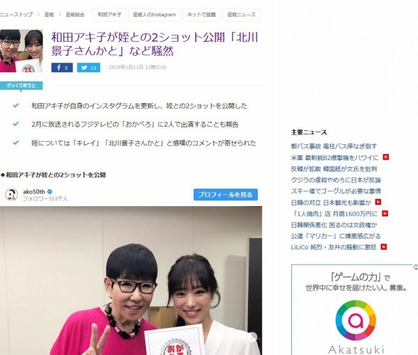 和田アキ子 美人すぎる姪との2ショットに 北川景子さんかと 深田恭子さん似 とフォロワー騒然 ガールズちゃんねる girls channel