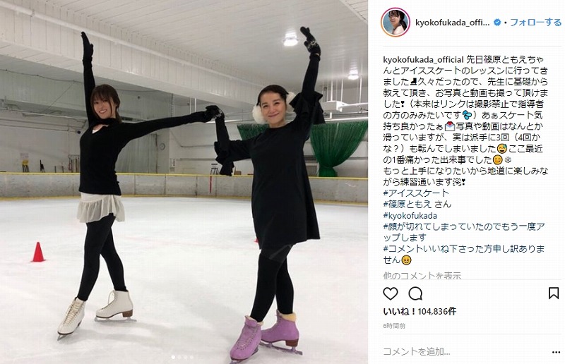 深田恭子さんのインスタグラム写真 深田恭子instagram 先日篠原ともえちゃんとアイススケートの レッスンに行ってきました 久々だったので 先生に基礎から教えて頂き お写真と動画も撮って頂けました 本来はリンクは撮影禁止で指導者の方のみみたいです