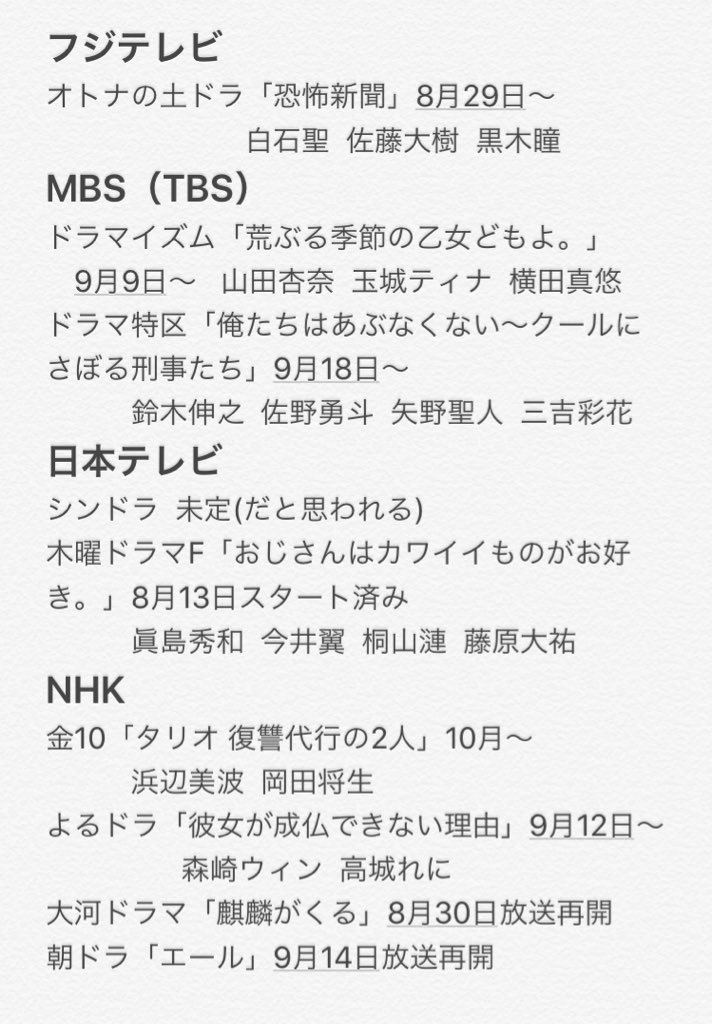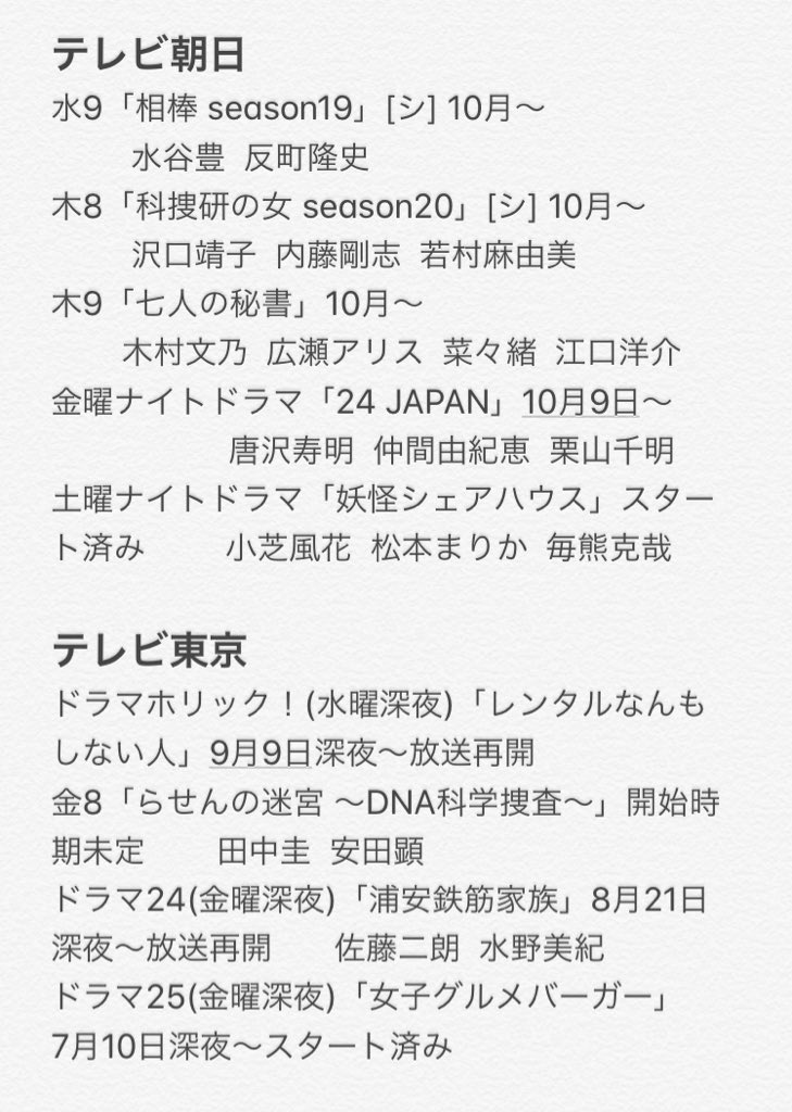 canon على تويتر 新ドラマ と 放送再開するドラマ と もう始まってて次が決まってない枠はその始まってるドラマ 続 続編 2作目 シ シリーズもの 新ドラマ 上野樹里 福士蒼汰 深田恭子 松岡茉優 三浦春馬 山田涼介 田中圭 妻夫木聡 波瑠 柴咲
