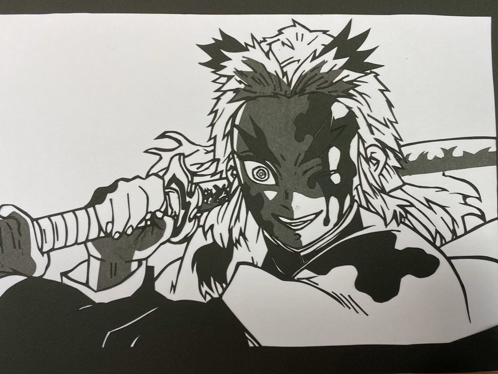 シャボン玉おじさん kazu twitter પર 今日の作品 パーツごとの切り離しバージョンも絵に忠実の出来で良いんですが 切り絵 らしさがちょっと足りない様な 鬼滅の刃 きめつのやいば kimetsu 切り絵 きりえ 煉獄杏寿郎 煉獄さん rengoku 吾峠呼世晴