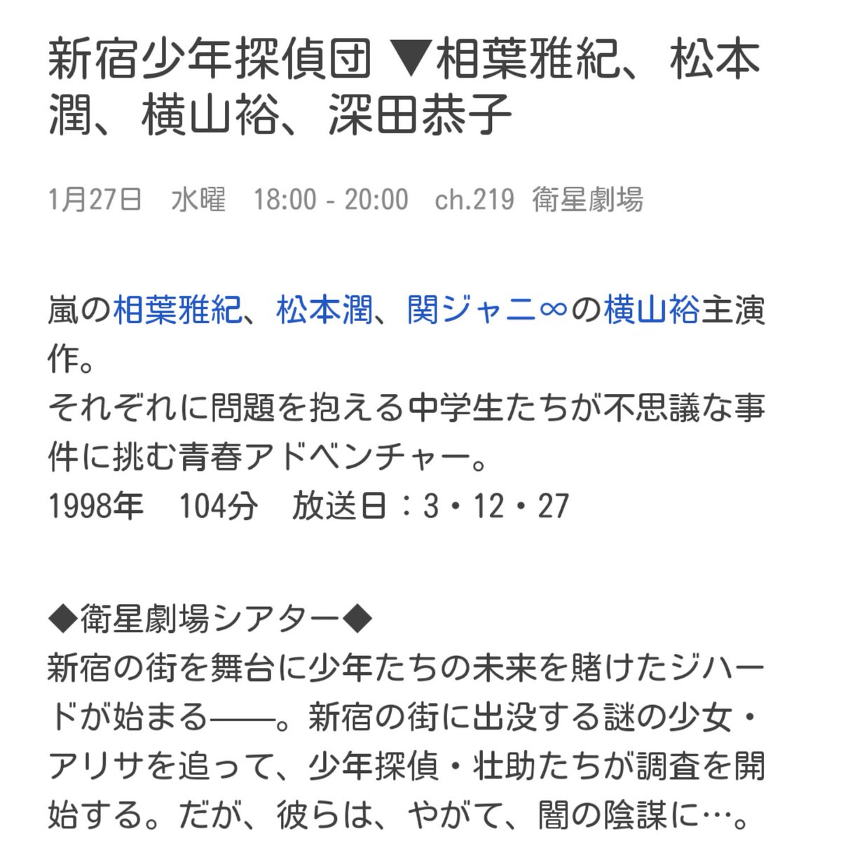 新宿少年探偵団 パンフレット パンフ vhs ビデオテープ ビデオ 嵐 相葉雅紀 松本潤 関ジャニ 横山裕 深田恭子 状態確認