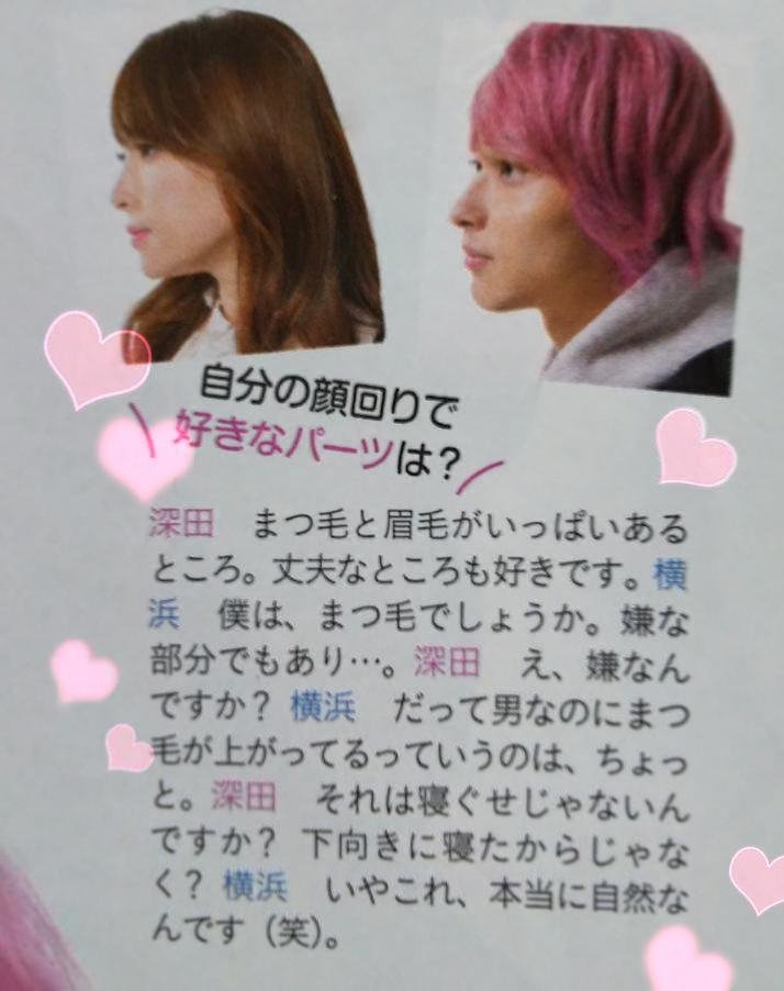 みこりん on twitter 溜まりに溜まった流星 君の切り抜きを整理 数少ないはじこい系の記事を見つけると読みふけるから 整理が進まない 深キョンと流星君のまつ毛トーク 面白い 深キョン 流星君のまつ毛を寝ぐせと 横浜流星 深田恭子 はじこい