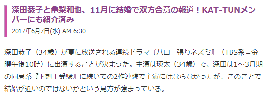 结田恭子龟梨和也深田恭子将于11月结婚 泰州娱乐资讯