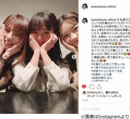 写真 深田恭子 多部未華子 永野芽郁 三姉妹 ショット話題 写真