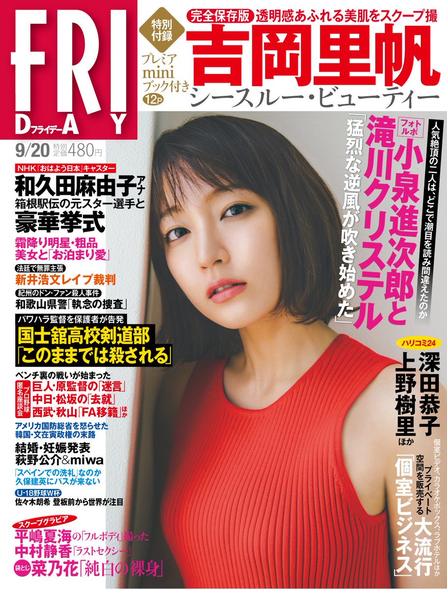 フライデー 吉岡里帆 深田恭子 上野樹里 平嶋夏海 中村静香 菜乃花 2019 09 20 新品 未読品 プレミアminiブック付き