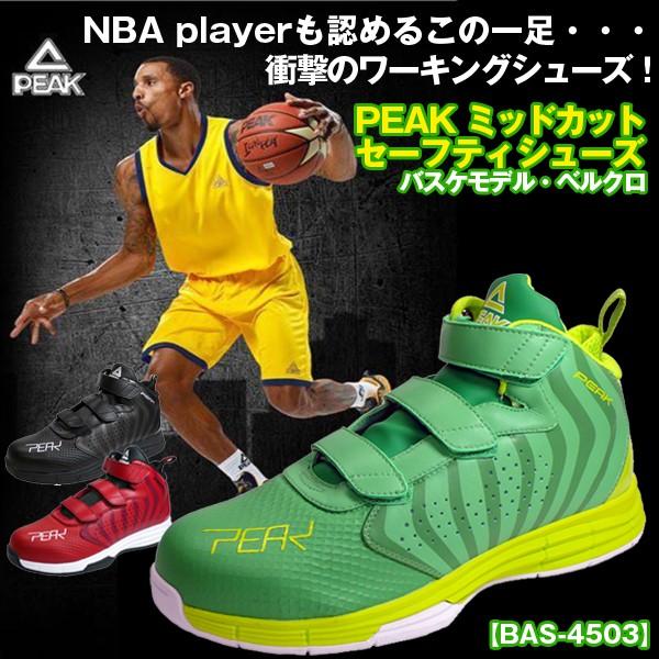 peakミッドカットセーフティシューズバスケモデルベルクロ ピーク メンズ 安全靴 銅鉄先芯 ベルトタイプ nbaプレイヤー愛用 作業靴 軽量 クッション性 ado bas4503 プレミアムポニー 通販 yahoo ショッピング