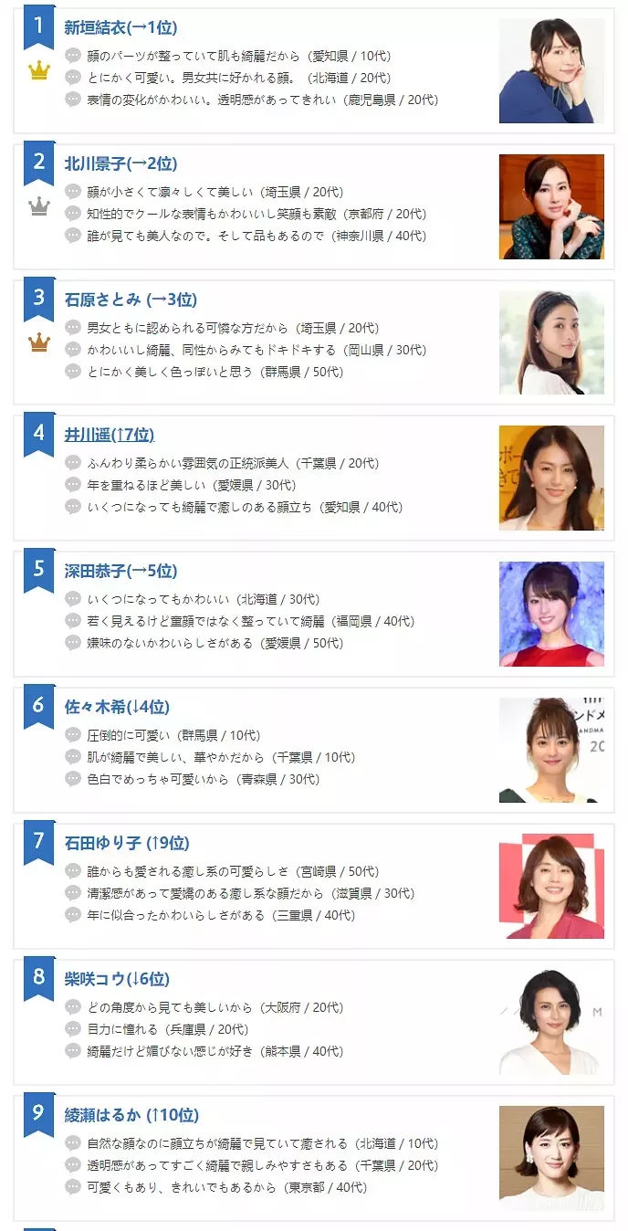 潮日放送 女生最恨要 日本10 大 最想似佢咁靚女 女星排行榜 u travel 旅遊資訊網站