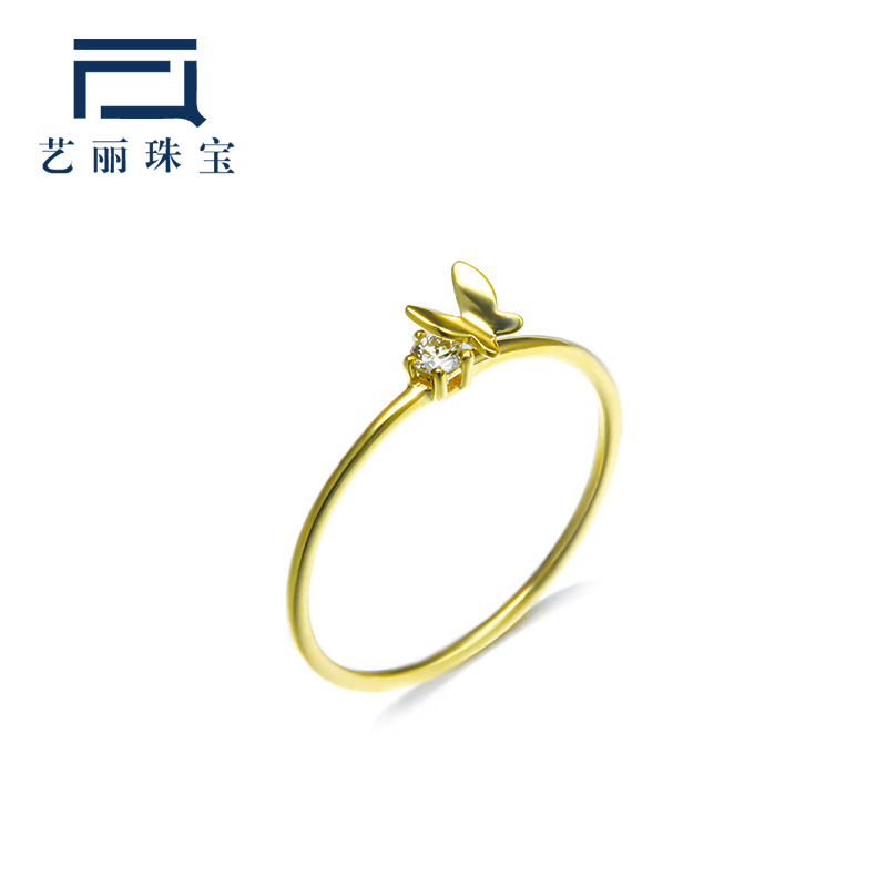 艺丽珠宝深田恭子同款9k金花与蝴蝶锆石戒指女新款项链套装戒子 阿里巴巴