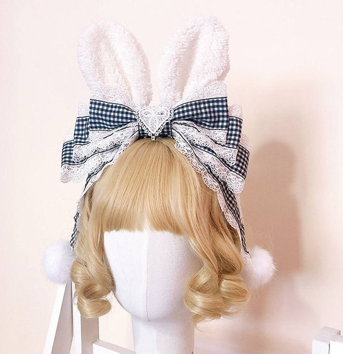 ロリータ ギンガムチェック うさ耳カチューシャ カチューシャ モコモコ 甘ロリ コスプレ アリス メイド ヘッドドレス loli1739 luxury powered by base