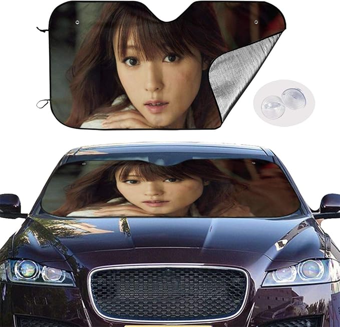 amazon 深田恭子 深キョン カーフロントカバー 車用サンシェード ガラスサンシェード 遮光 車用遮光断熱 紫外線対策折り畳み カバー ゴム吸盤取付 汎用 軽量 簡単取付 130x70cm サンシェード 車 バイク