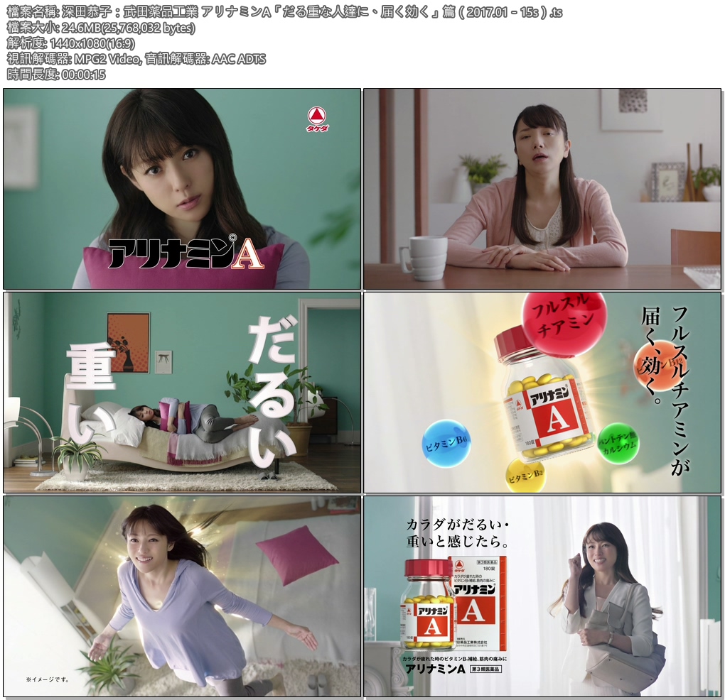 tvcm cut 深田恭子 武田薬品工業 アリナミンa だる重な人達に 届く効く 篇 2017 01 15s