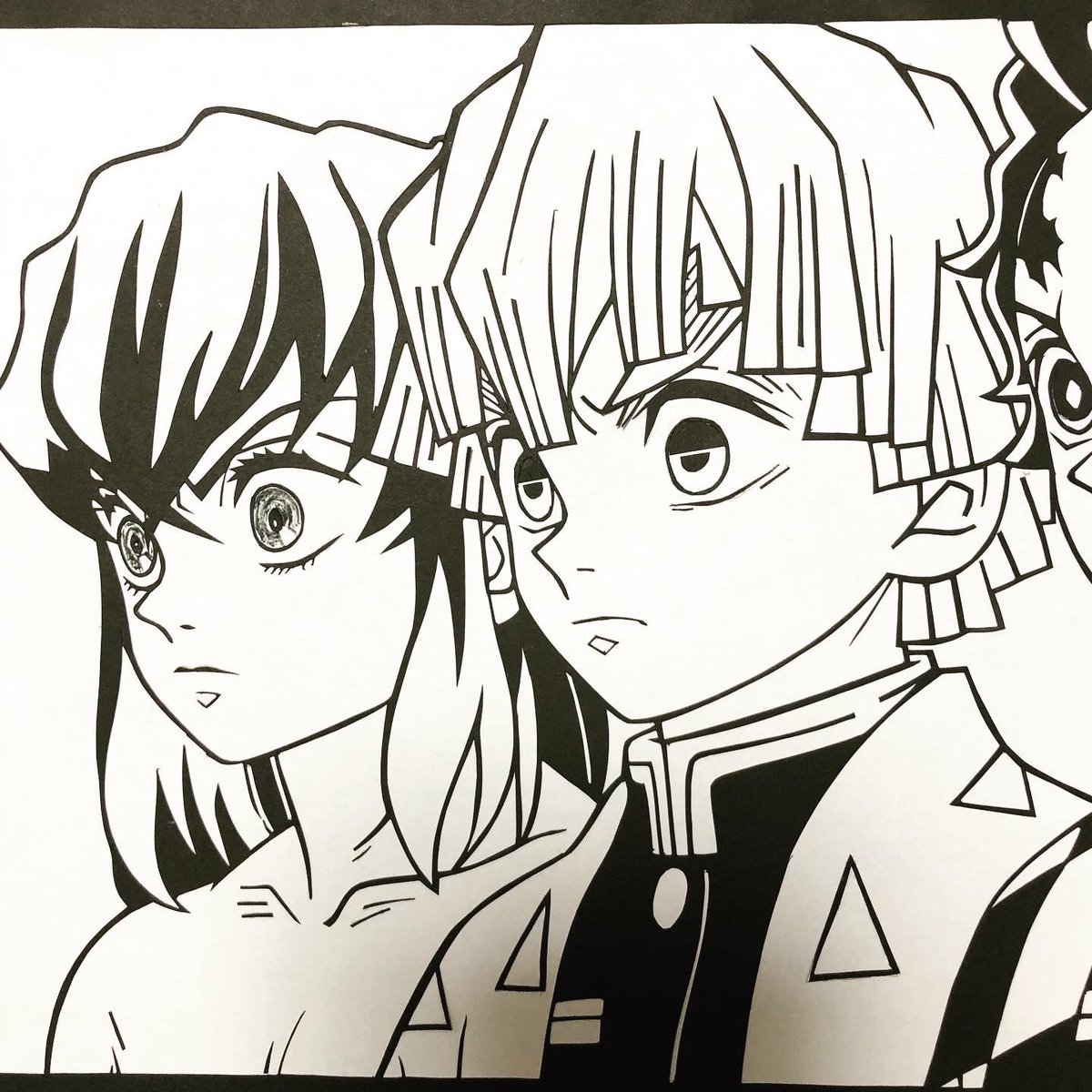 甘夏 no twitter 鬼滅の刃の切り絵です 今回はフォロワーさんよりリクエストを頂きました かまぼこ隊 です 試しにコピーしたものにパステルで色付けしてみました 4枚目 気に入って頂けるかドキドキです 鬼滅の刃 鬼滅 きめつのやいば 切り絵 竈門炭