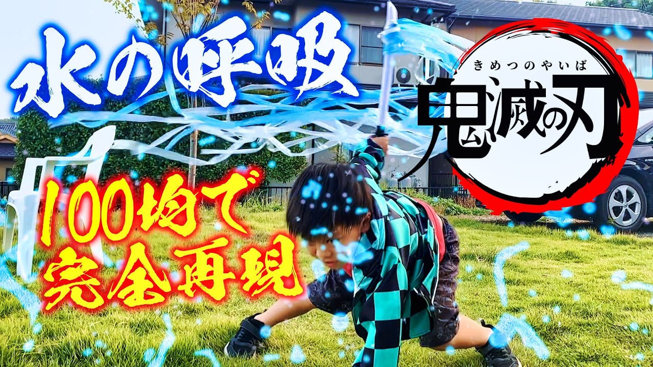 水の呼吸を実写で再現 鬼滅の刃の日輪刀を100均で簡単に手作りグッズ工作 アニメの紅蓮華の技や戦闘シーンのアクロバットや パルクールに炭治郎が挑戦