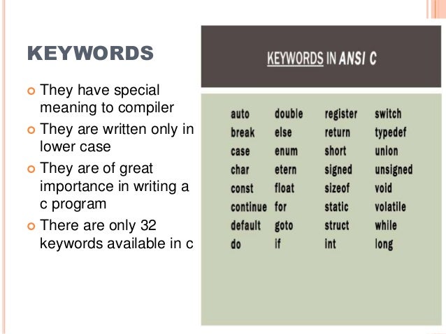 keywords in c c tutorial