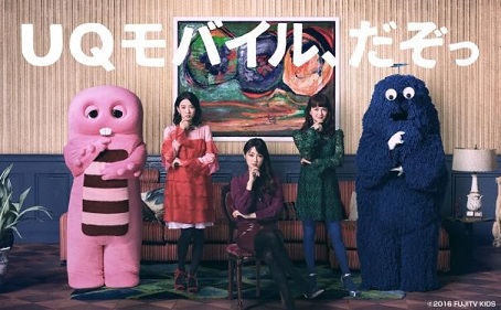 uqモバイルcmの三姉妹の女優は誰 ガチャピンとムックが可愛い ストーン変人