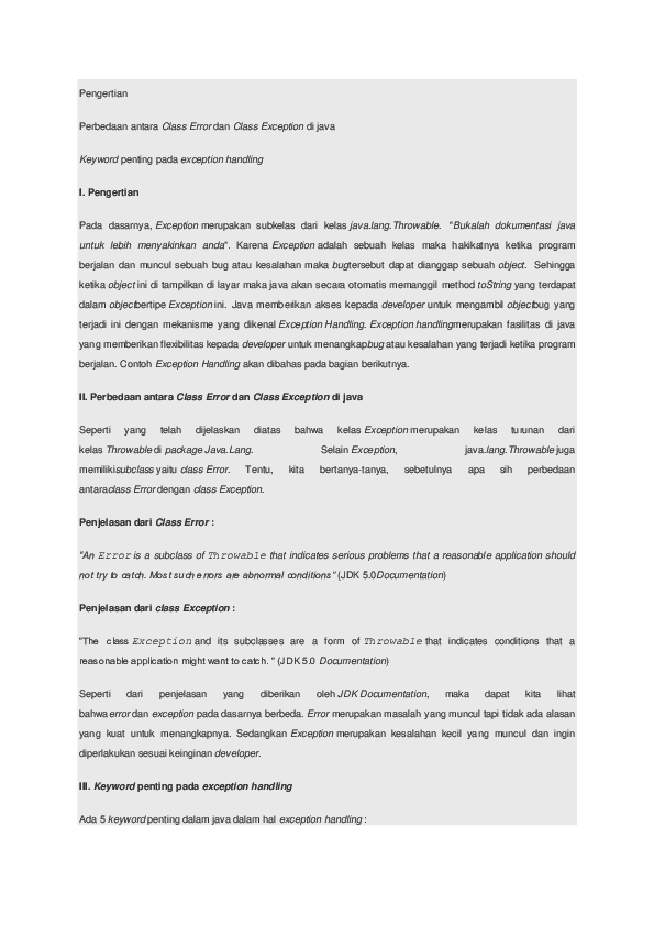 exception handling in java notes