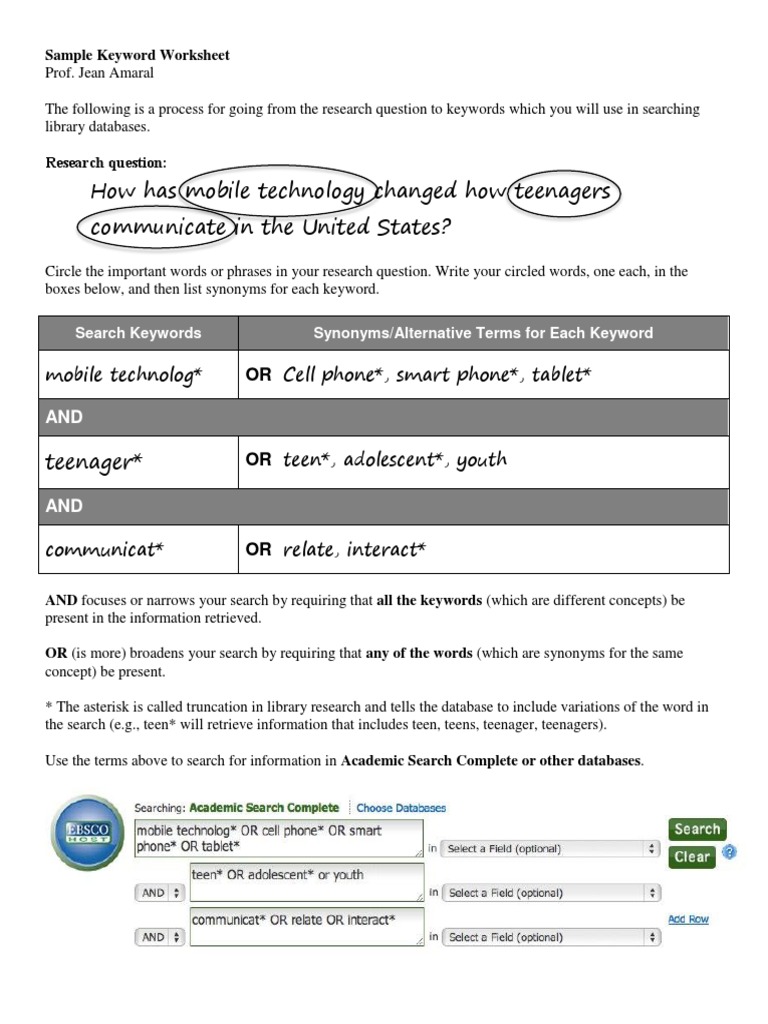 keyword worksheet 1 your research