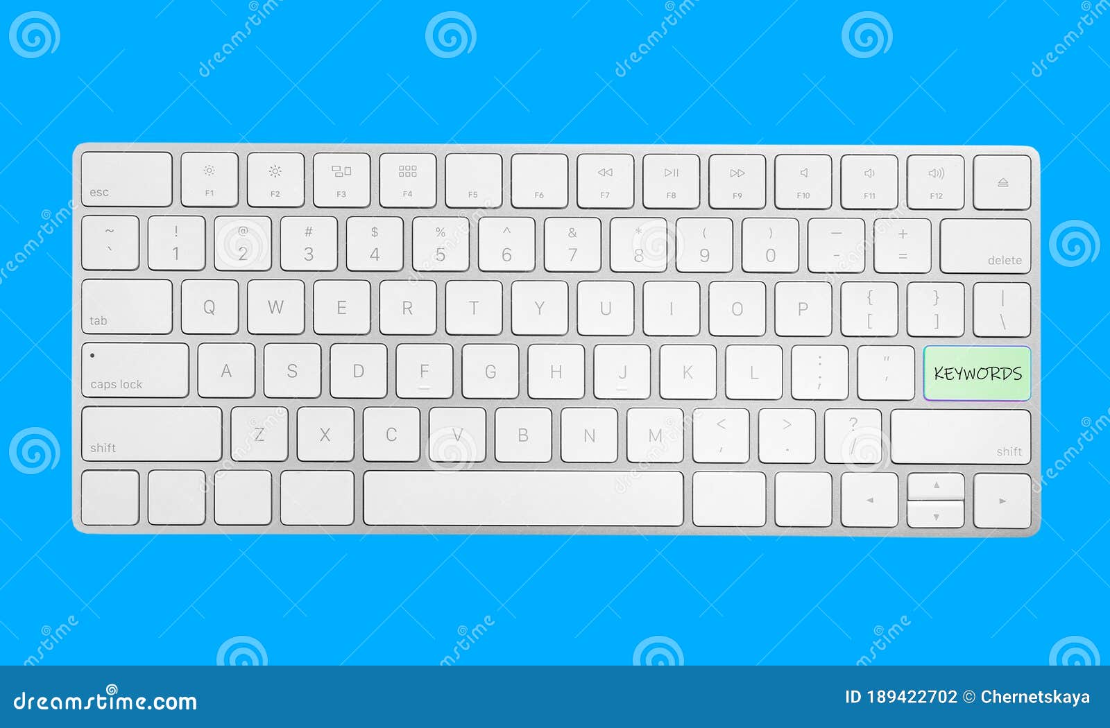keyboard with text keywords on background top view stock photo image of device communication 189422702